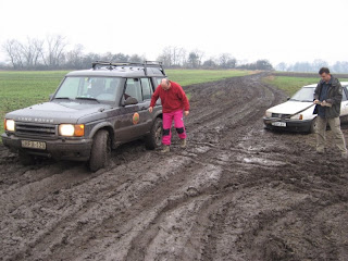 Először egy puszta közepén akadtunk el a bokáig érő sárban, szerencsénkre ekkor még jártak arra nagyobb gépek is, így a KECS Rescue Team kihúzott minket (köszönet érte!).